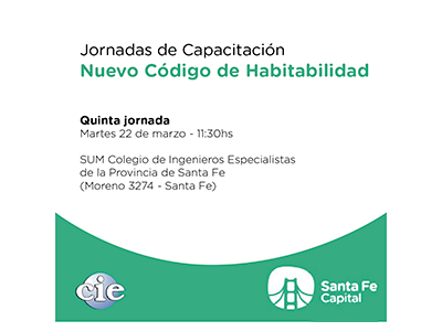 Tema: introducción general a la reglamentación del Código de Habitabilidad. Organizan: CIE y Municipalidad de la ciudad de Santa Fe.