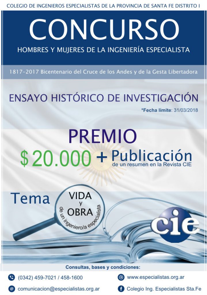 Premio: $ 20.000 (pesos veinte mil) y publicación de resumen del trabajo en la Revista CIE.-