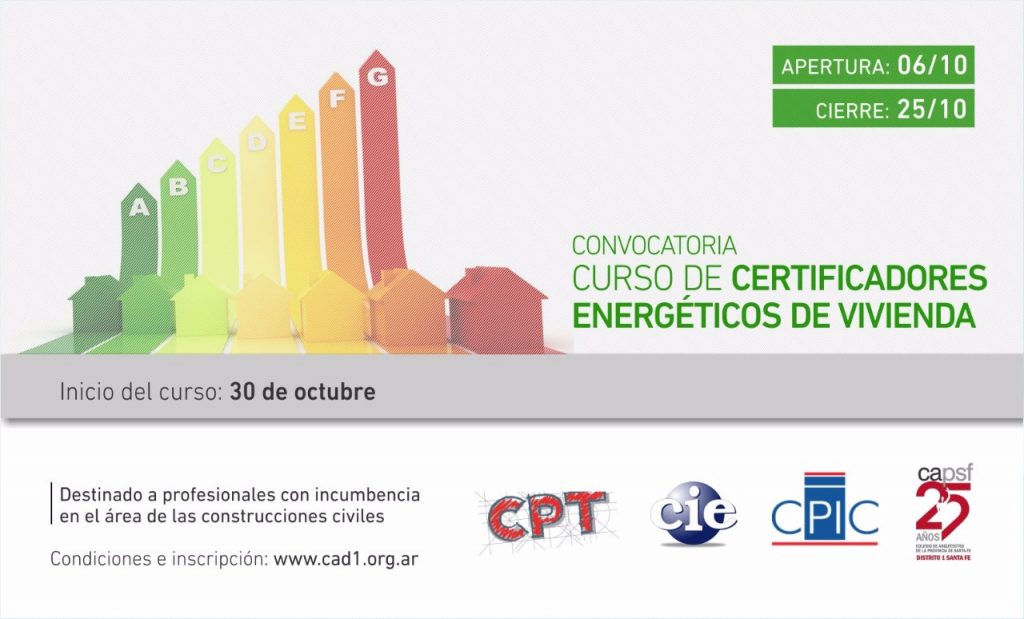 Se encuentra abierta la Convocatoria para participar del Curso de Certificadores Energéticos de Viviendas, organizado conjuntamente con los siguientes Colegios Profesionales: