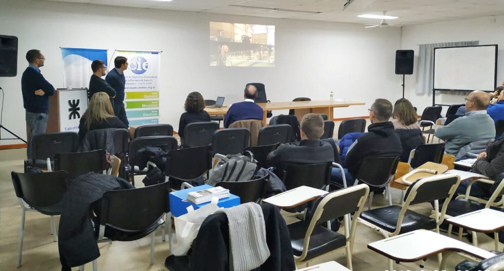 Integrantes de la Comisión CIE Joven, acompañados por el Ing. José Realini en representación del Directorio del Colegio y el Ing. Oscar Demartini de la Secretaría Técnica dieron a conocer en UTN Facultad Regional Reconquista la misión y función del CIE.