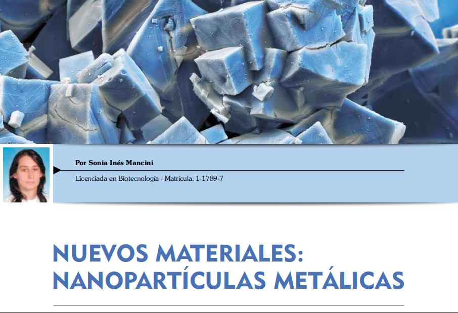 En nuestra última edición de la revista institucional del CIE, por el área Otras Especialidades la licenciada en Biotecnología Sonia Inés Mancini (matrícula 1-1789-7) redactó un artículo sobre nanopartículas metálicas. Te invitamos a leerlo, cliqueando aquí.