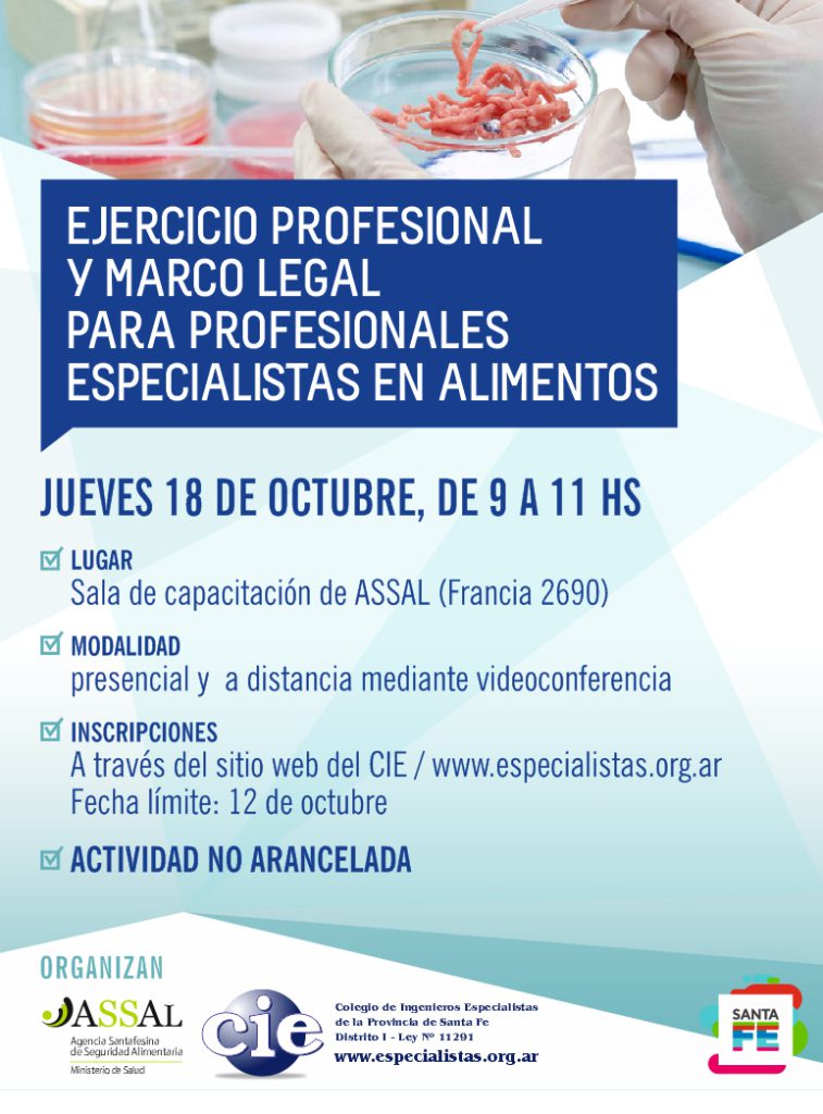 Jueves 18 de octubre de 9 a 11. Sede de ASSAL – Francia 2690 – Santa Fe.