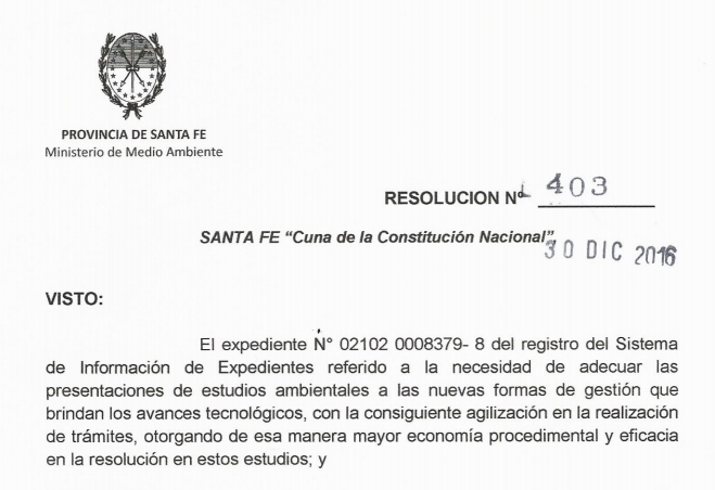 El pasado 30 de diciembre de 2016 el Ministerio de Medio Ambiente publicó la Resolución 403/16. Esta normativa establece un nuevo sistema on-line para Formularios de Presentación A y B, de Estudios de Impacto Ambiental e Informe Ambiental de Cumplimiento. La confección digital de los estudios ambientales para industrias – de carácter obligatorio – permitirá el cumplimiento de los estudios ambientales establecidos en el Decreto N° 0101/03 y la nombrada Resolución Nº 403/16.