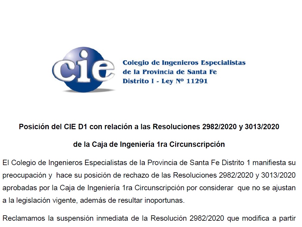 Mediante comunicado, el CIE Distrito 1 expresa su posición frente a las citadas resoluciones de la Caja de Ingeniería 1era. Circunscripción.