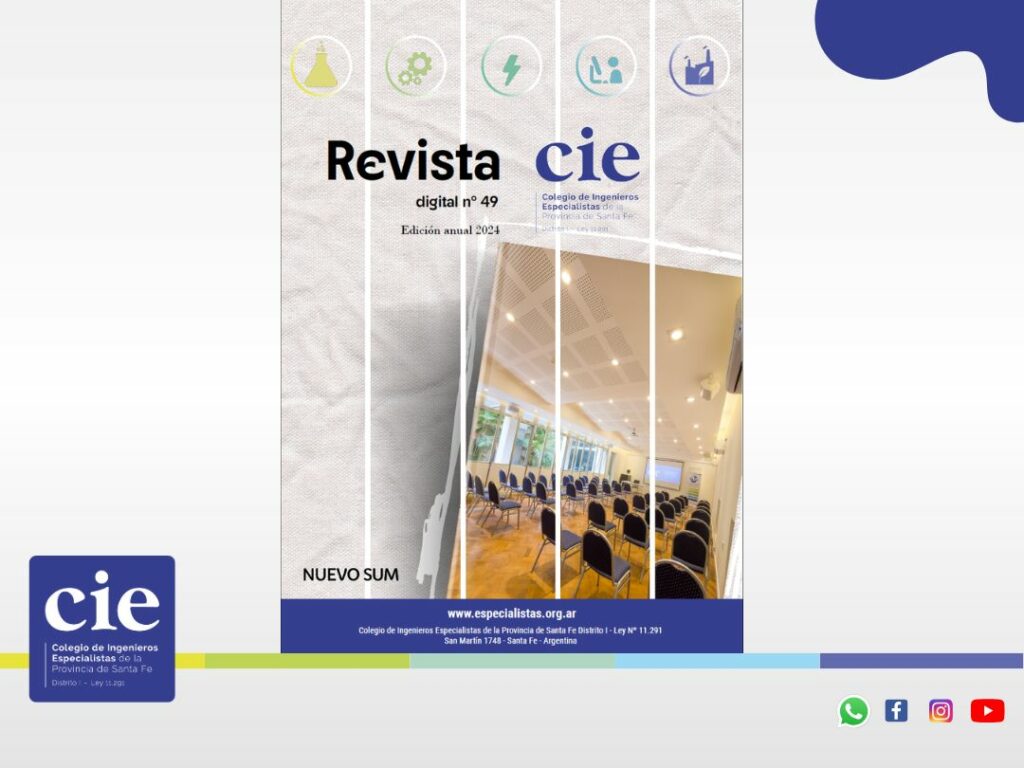 Revista institucional N° 49 InstitucionalesPublicado el 1 octubre, 2024 Te invitamos a hojearla ON-LINE CIEEléctricaHigiene y SeguridadIngeniería IndustrialMecánicaMedio AmbienteQuímicaSistemas